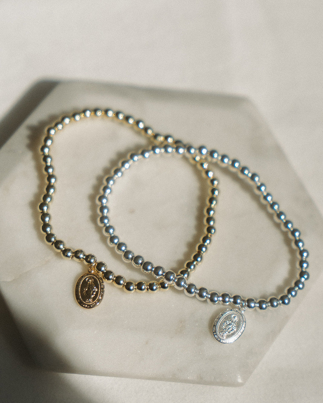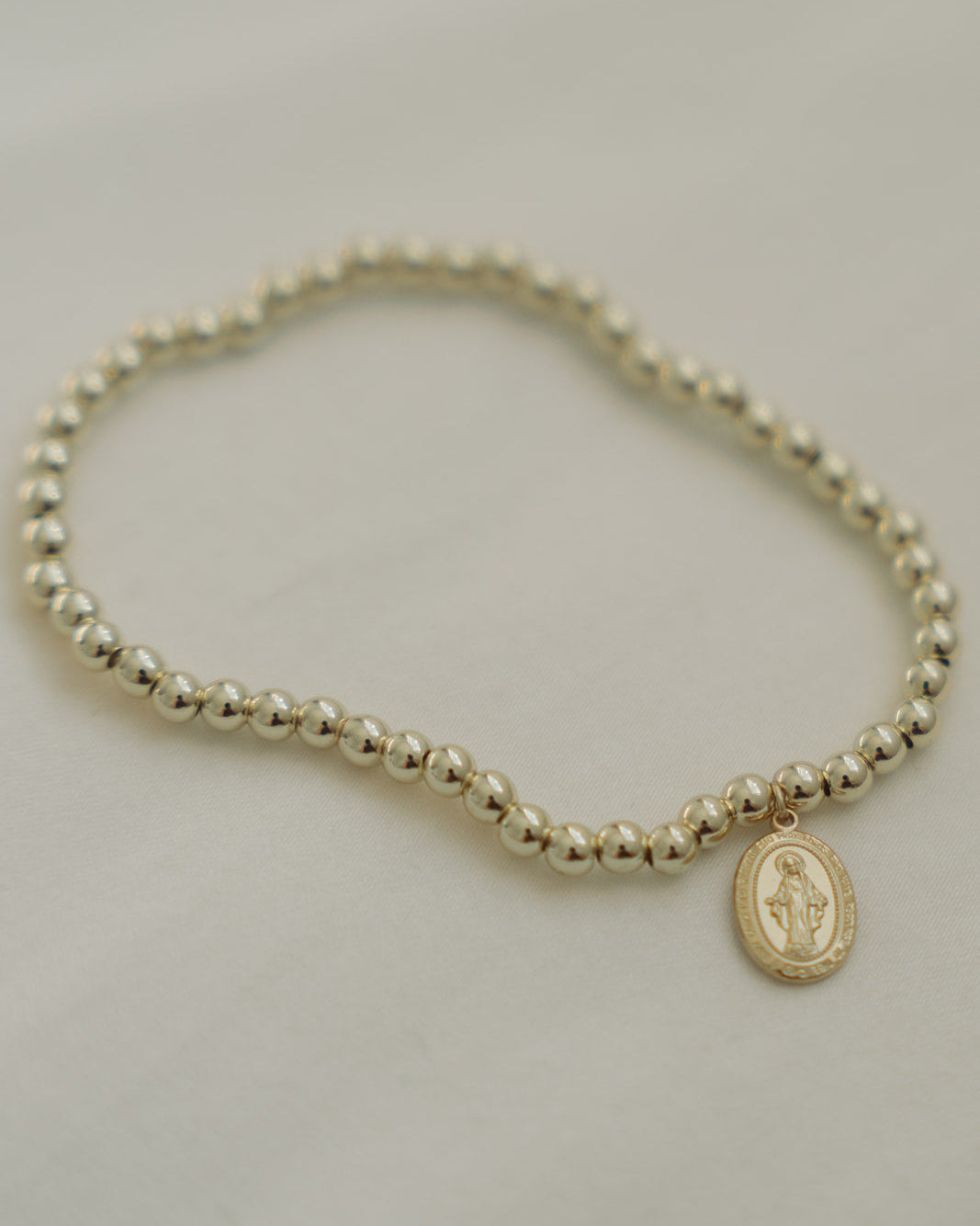 Known as a powerful sign of grace and protection, the Miraculous Medal has been cherished for generations as a reminder of Our Lady’s intercession. This bracelet pairs the beloved medal with a strand of delicate beads, creating a piece that is both prayerful and beautifully wearable.